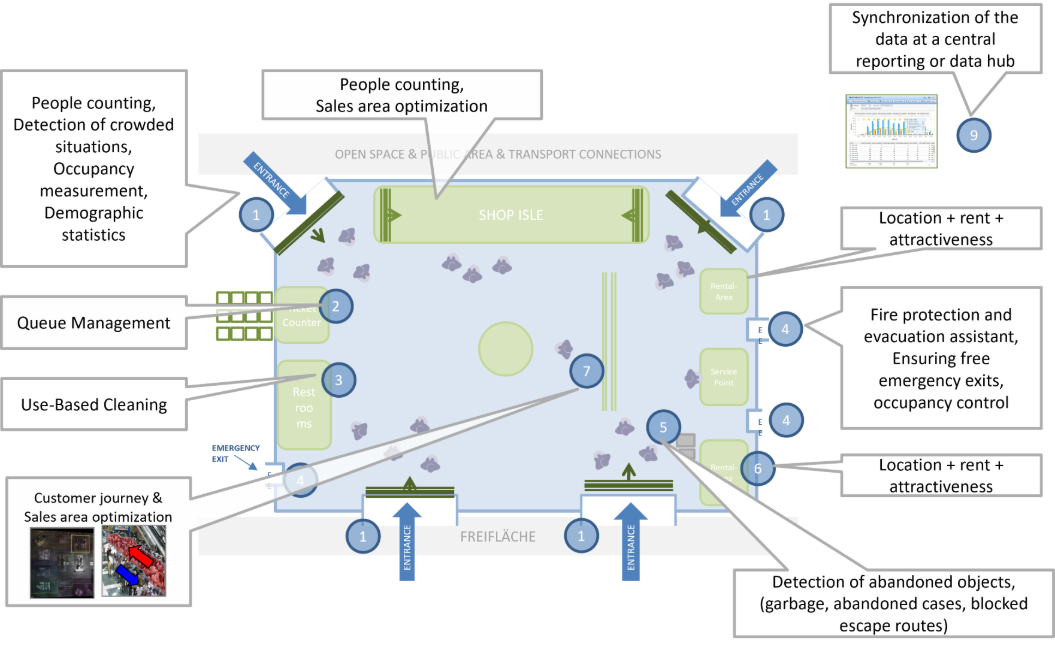 Nutzen Sie unsere Sensorik, um ihre Attraktivität zu verbessern. Überwachen Sie langfristig wie sich ihre Frequenz, Verweildauer und Attraktivität entwickelt. Es hilft ihnen dabei ihre Flächenauslastung, Mieter-Mix und Standortbeurteilung zu optimieren.